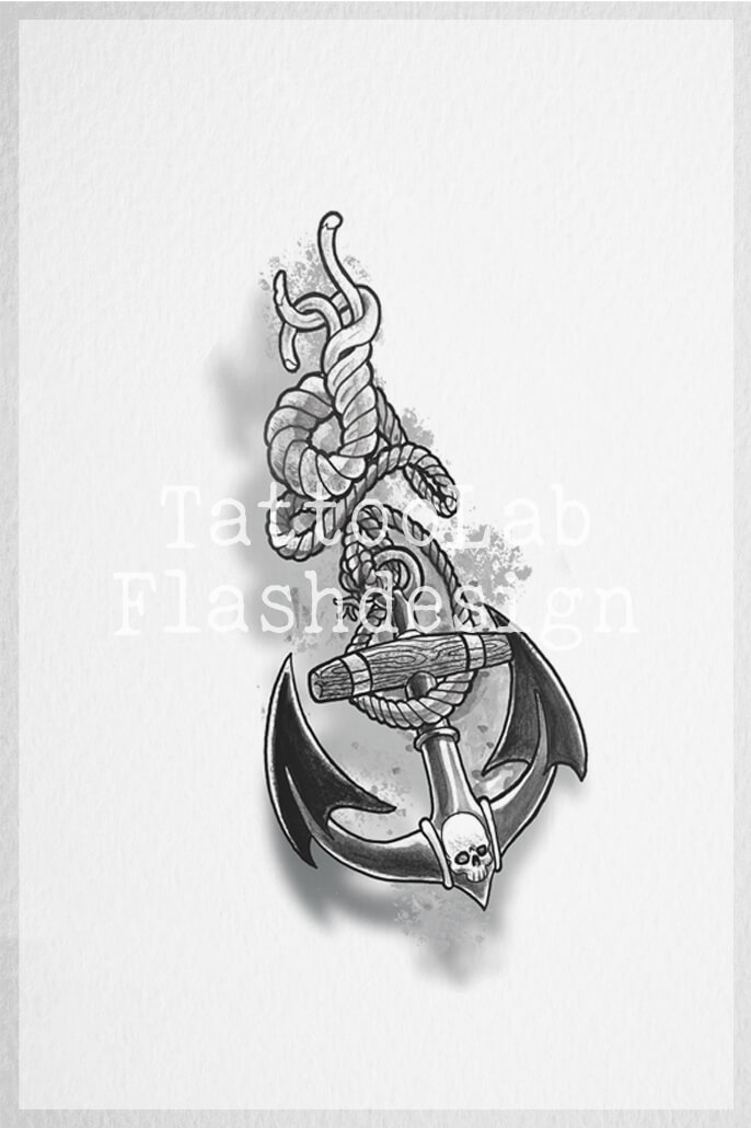 Boek nu online dit unieke tattoo ontwerp door Jeroen! Een anker met een touw en kleine schedel. Een ontwerp van formaat in zijn kenmerkende stijl. Een combinatie van technieken en vol mooie details! Het ontwerp is geschikt voor verschillende plaatsingen op het lichaam. Deze tattoo is eenmalig beschikbaar en daarmee echt jouw eigen persoonlijke design. De slagschaduw onder het ontwerp is optioneel. Zie je liever een ander onderwerp in deze stijl? Vul dan het aanvraagformulier in voor een custom ontwerp.