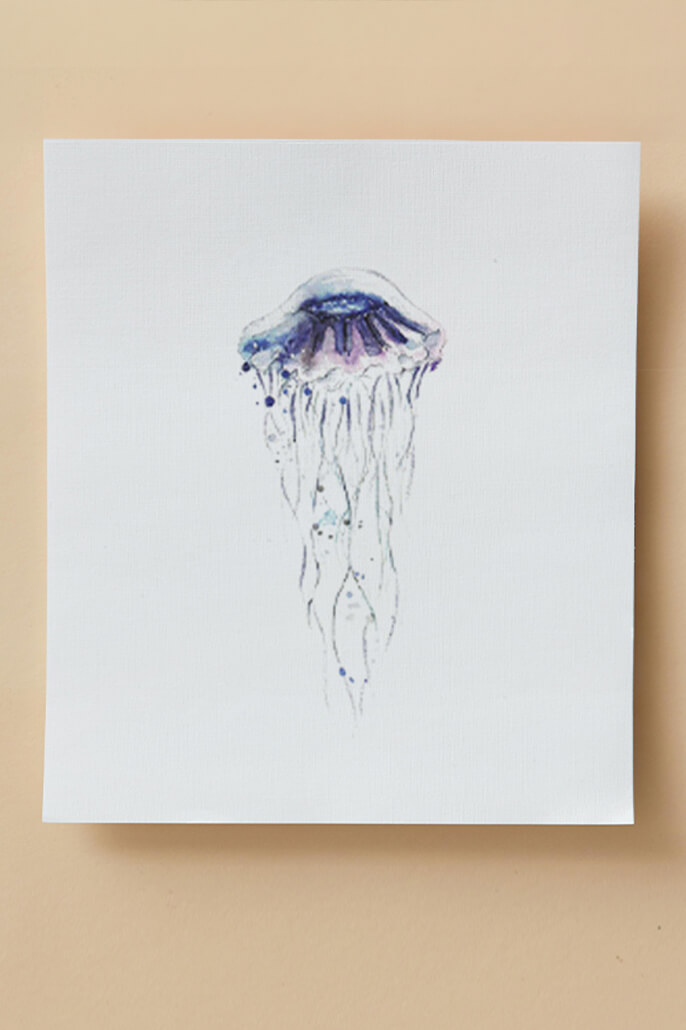 Deze kleurrijke kwal is ontworpen door Francine en met de hand getekend. In de webshop is dit ontwerp tevens beschikbaar als uniek tattoo ontwerp of A4-artprint! De originele uitvoering van dit ontwerp heeft een vierkante afmeting van 30 x 30 cm.