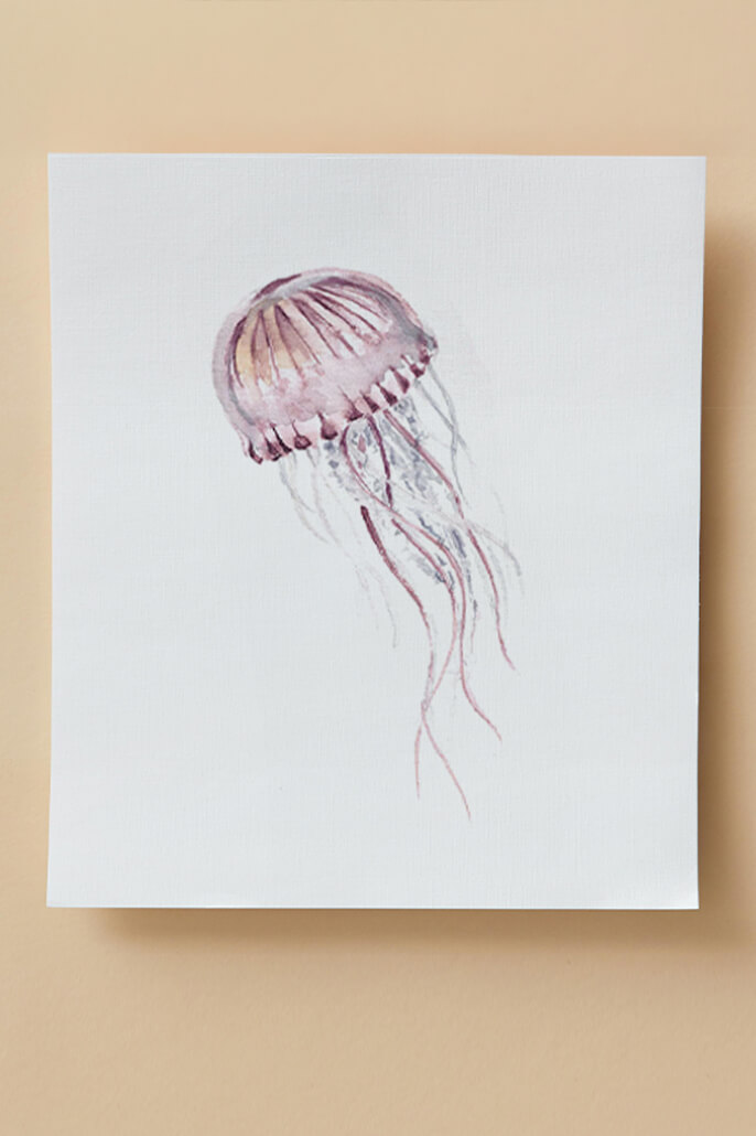 • Watercolour stijl tattoo ontwerp van een kwal in kleur, handgemaakt door Francine