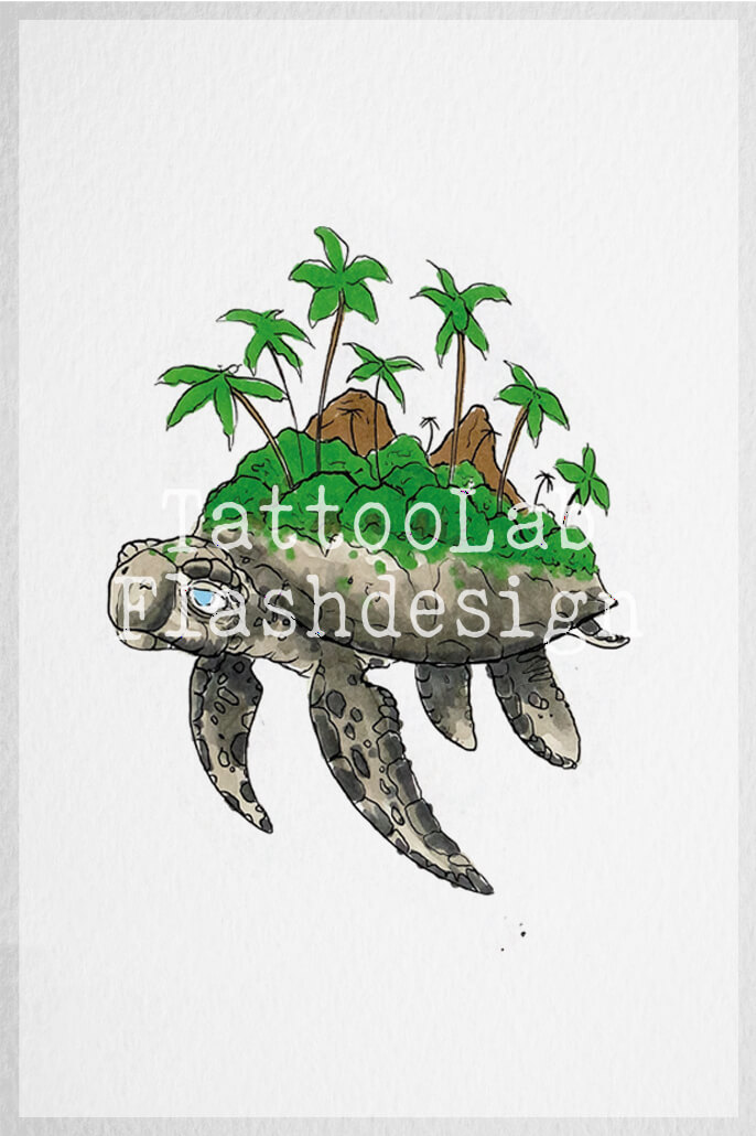 Schildpad eiland, kleur – Tattoo, Aaron