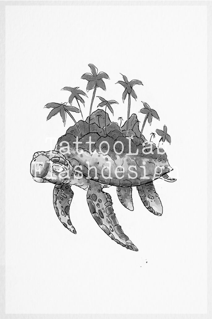 Dit unieke tattoo ontwerp door Aaron is gebaseerd op een illustratieve schildpad, versierd met een eiland op zijn schild. Uitgewerkt in  grijstinten en vol leuke details. Dit ontwerp is handgemaakt door Aaron en eenmalig beschikbaar als bijzondere tattoo. Zie je liever een ander onderwerp in deze opvallende stijl? Vul dan het aanvraagformulier in voor een custom ontwerp.