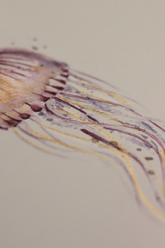 Deze bijzondere A4-print is gebaseerd op een handgemaakte aquareltekening door Francine. Het ontwerp is onderdeel van een grotere serie zeedieren. De print is handmatig gedecoreerd met goudkleurige verf, waardoor het een uniek karakter krijgt. Hierdoor kan het uiteindelijke exemplaar afwijken van degene op de afbeelding. Beschikbaar in genummerde en gelimiteerde oplage, afmeting A4 21×29,7 cm.