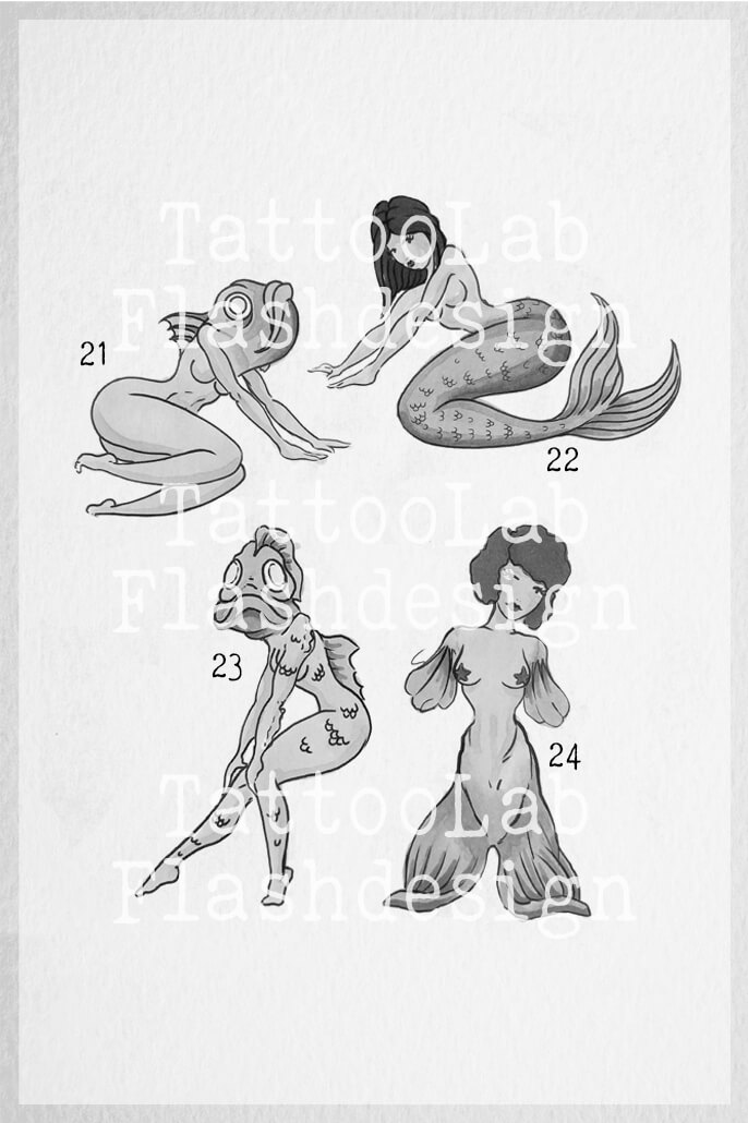 Deze unieke tattoo ontwerpen zijn met de hand getekend door Aaron en gebaseerd op traditionele old school ontwerpen. Zeemeerminnen maar dan nét even anders… Uitgewerkt in grijstinten en vol leuke details. Deze ontwerpen zijn eenmalig beschikbaar als bijzondere tattoo. Zie je liever een ander onderwerp in deze opvallende stijl? Vul dan het aanvraagformulier in voor een custom ontwerp.