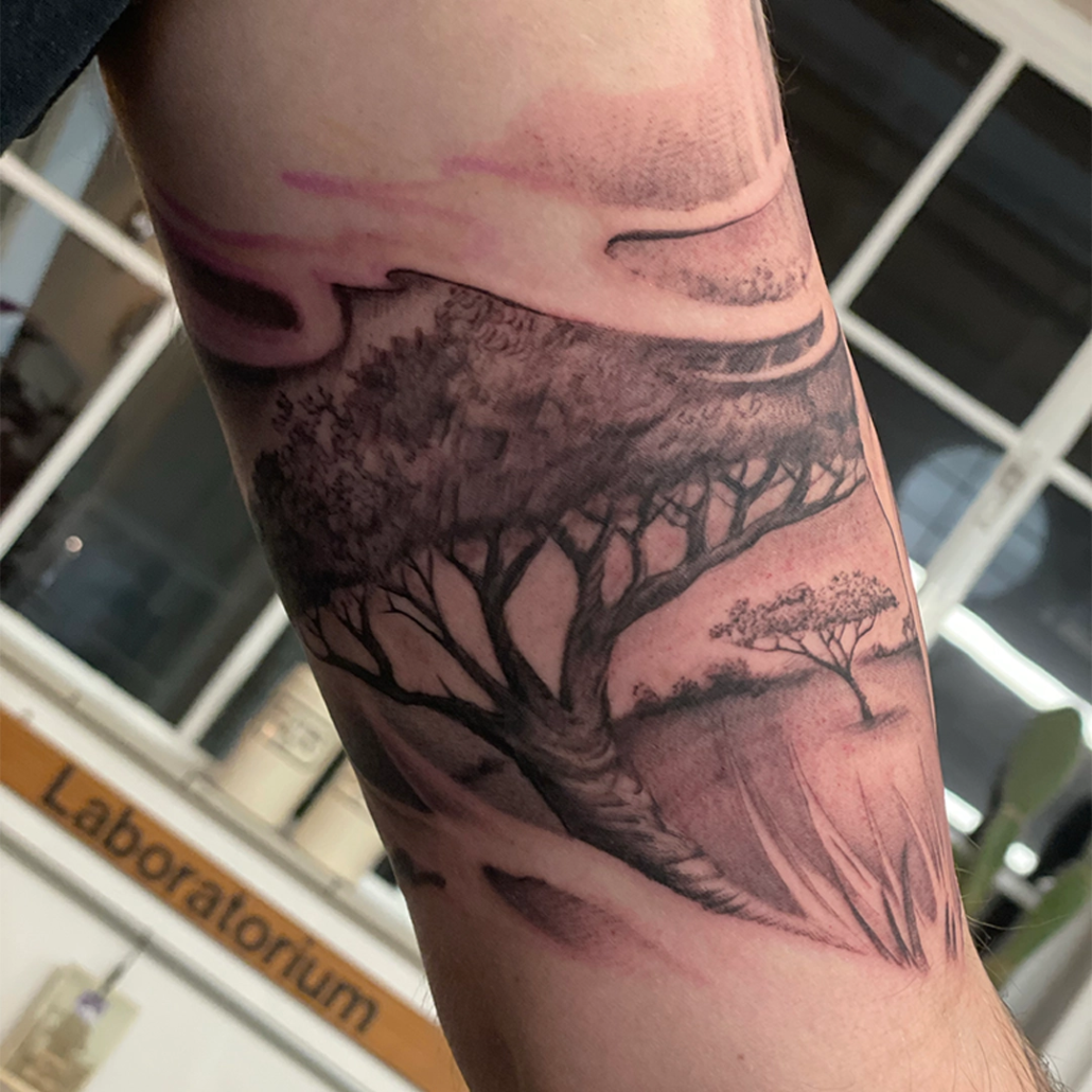 Werken met Jeroen is geen bestelling, maar een ontmoeting. Zijn sessies zijn altijd één-op-één: bespreken, ontwerpen én zetten gebeuren op dezelfde dag. Hij gelooft dat een tattoo pas echt betekenis krijgt wanneer klant en maker samen het moment vormgeven. Vaak doet hij vooraf research of maakt schetsen, maar het definitieve ontwerp ontstaat in het hier en nu, afgestemd op het lichaam. Geen verrassing dat hij voornamelijk freehand tattoos zet.