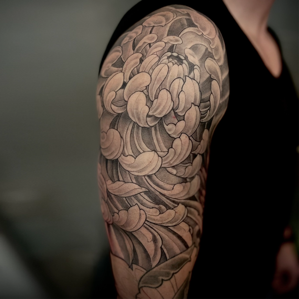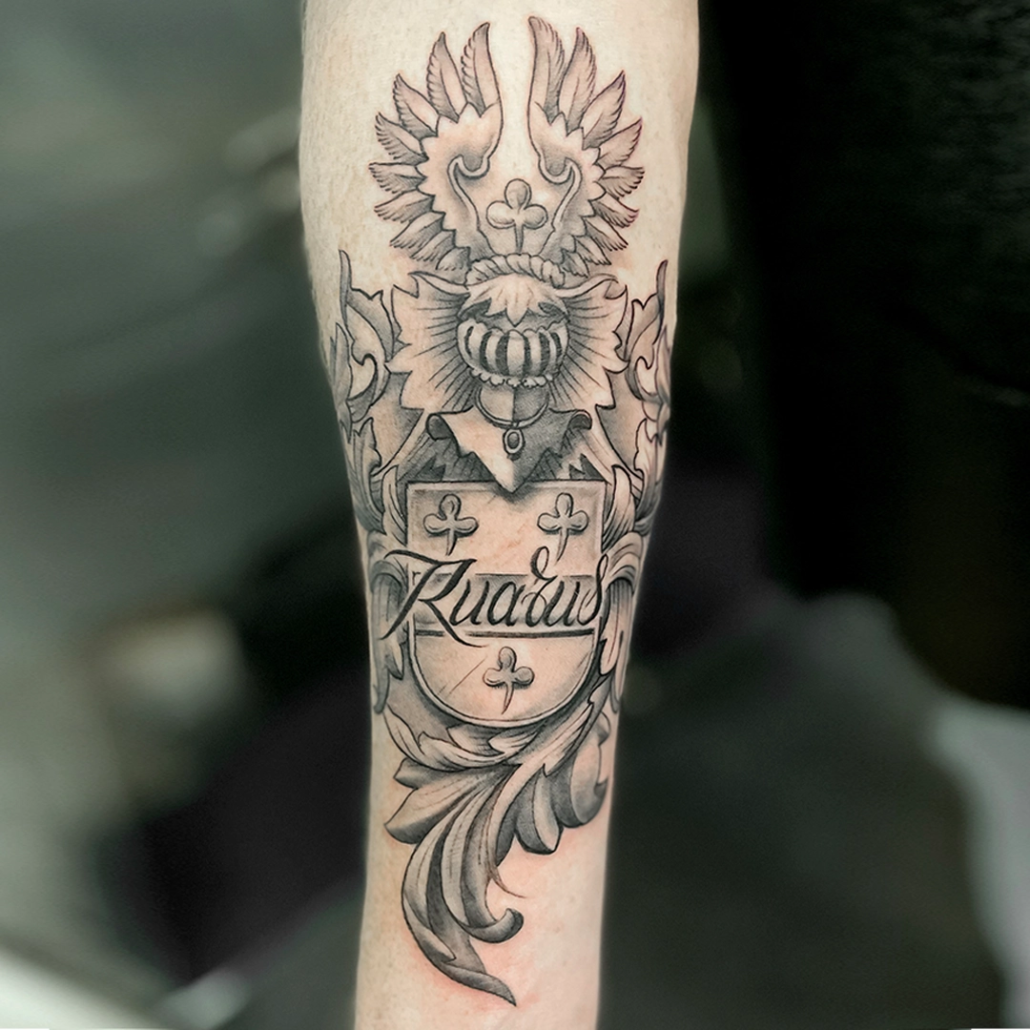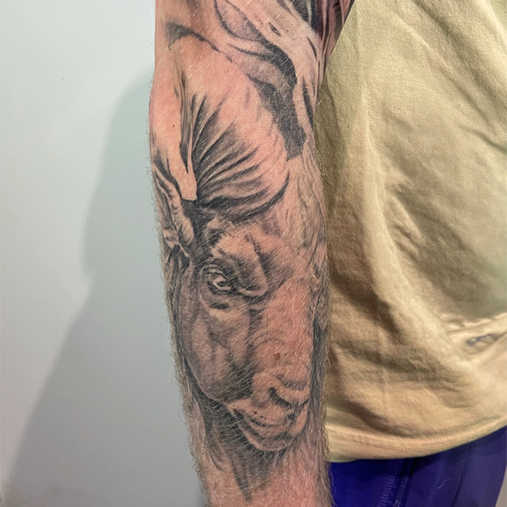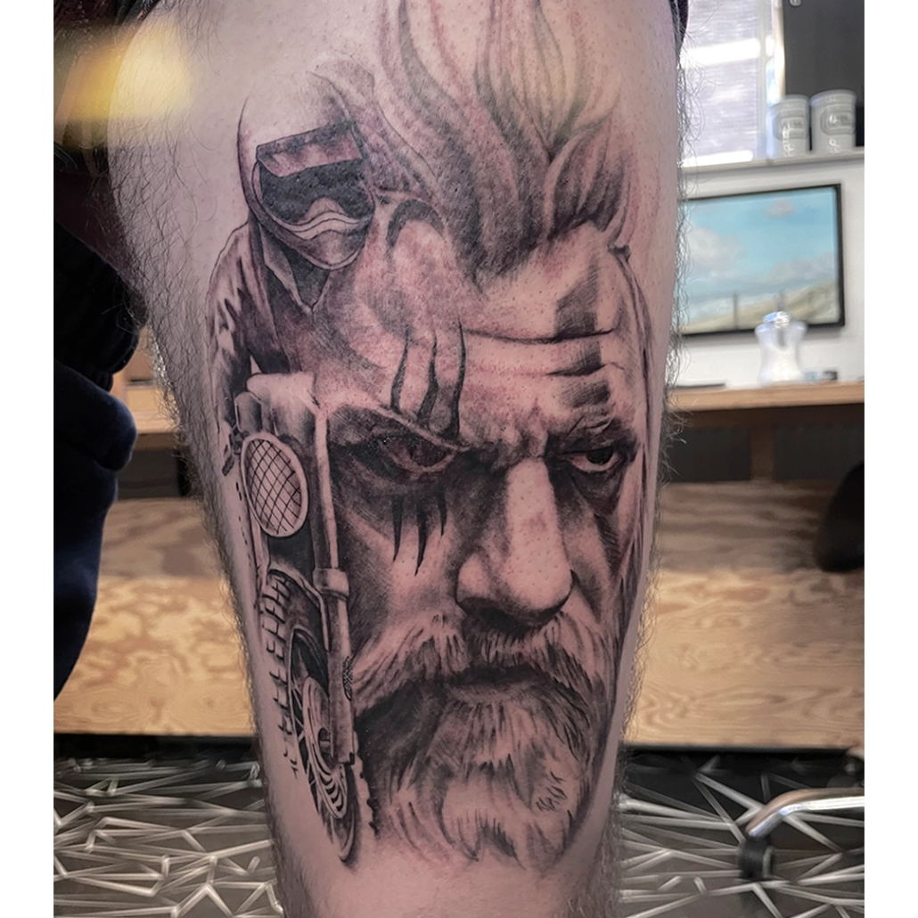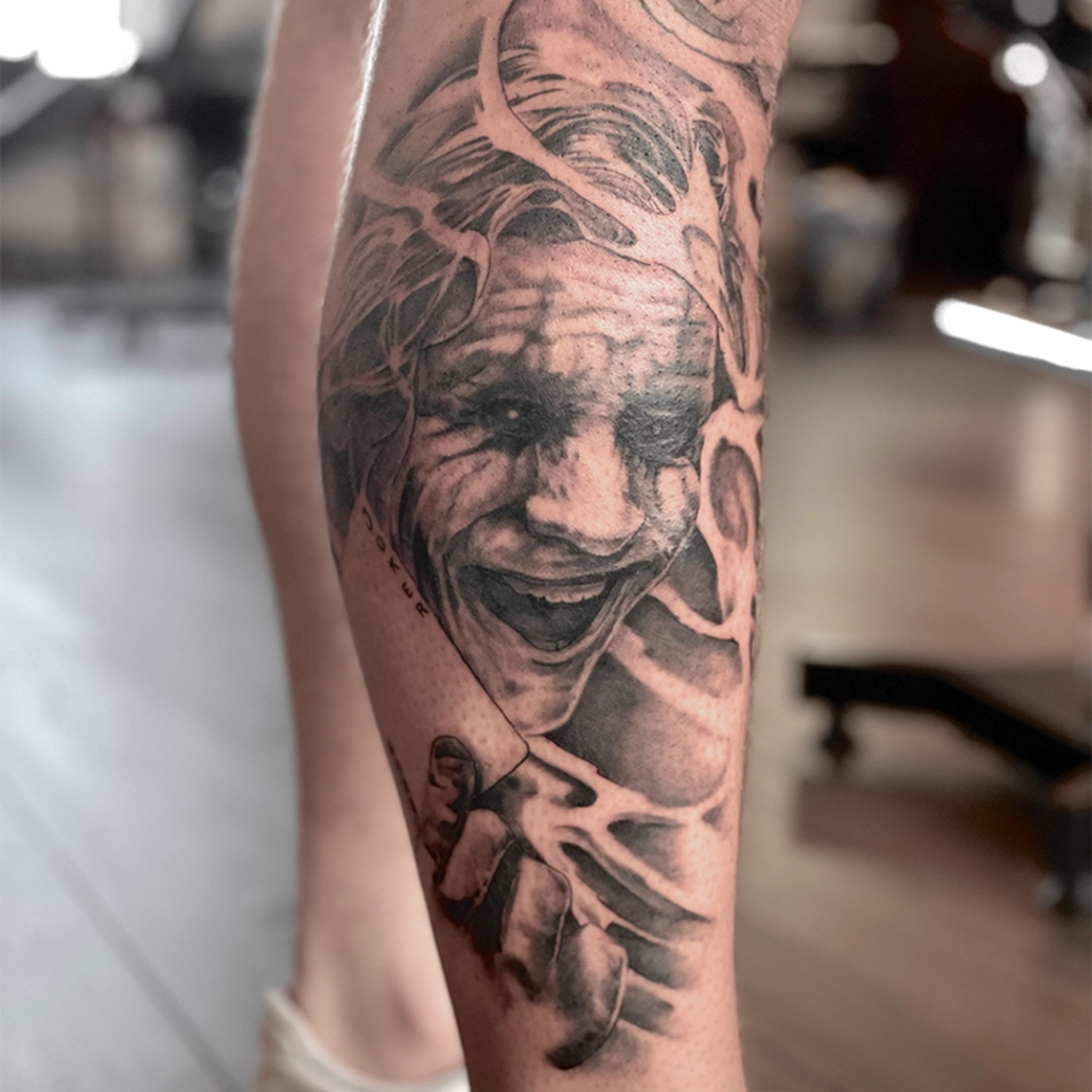 Ik wil je graag aan Jeroen voorstellen! Zijn stijl? Kneitervette lettering, krachtige thrash tattoos en ontwerpen die altijd in balans zijn, gemaakt voor jouw lichaam. Hij haalt zijn inspiratie uit de Japanse, Italiaanse en Nederlandse oude meesters uit de schilderkunst. Dat zie je terug in zijn werk: helder, gelaagd, technisch sterk – met respect voor traditie én voor de huid.